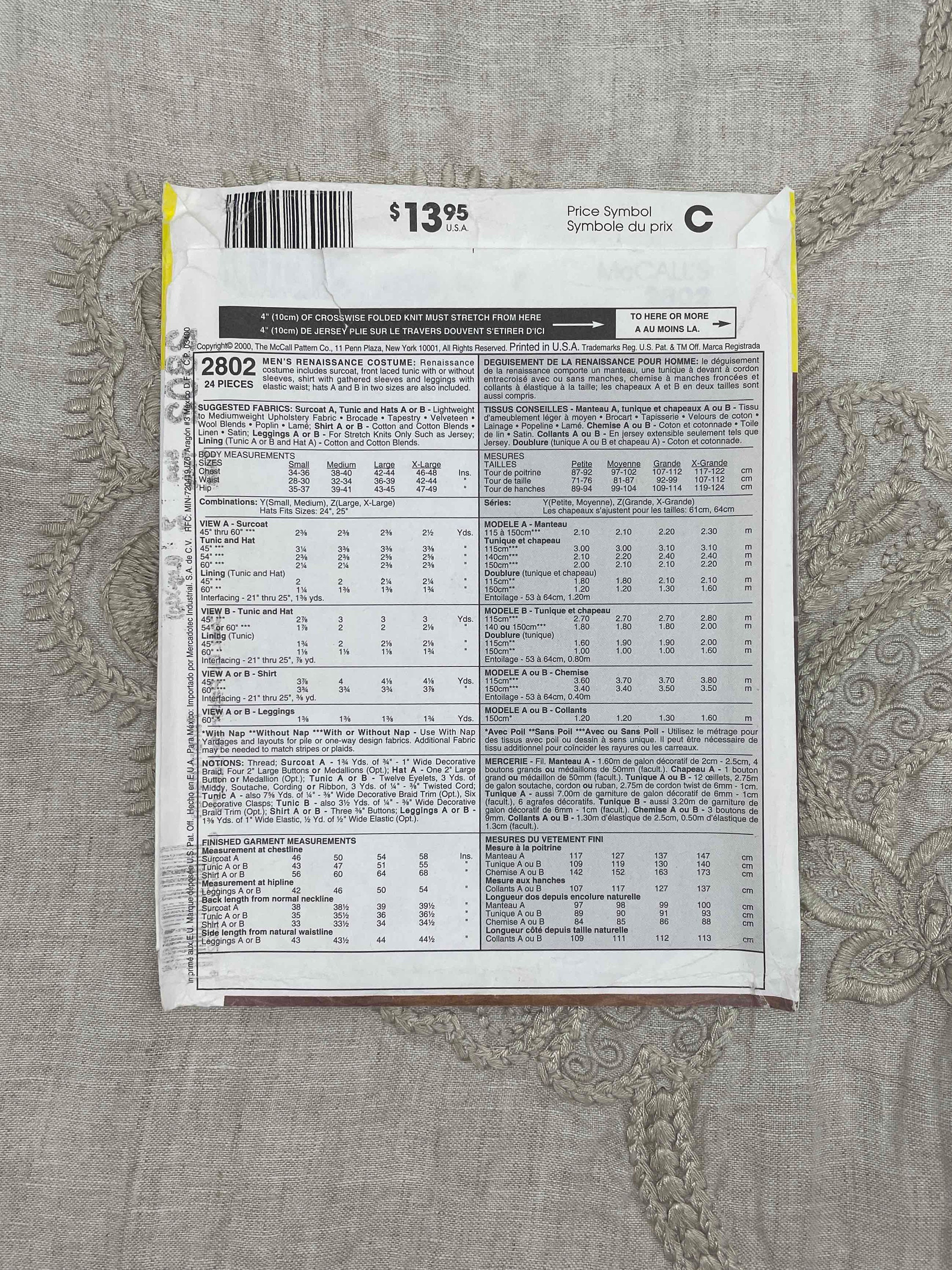 Men S Renaissance Costume Pattern Mccall S 2802 Size Etsy Halloween Costume Patterns Costume Patterns Mccalls Patterns Costumes